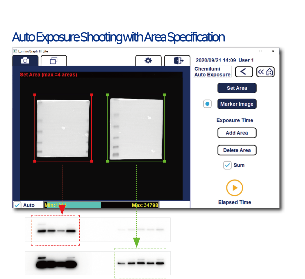 - If the signal of the target band is much weaker than that of other non-specific bands, it can be difficult to detect with general automatic exposure, as the exposure will be adjusted based on the stronger signal.