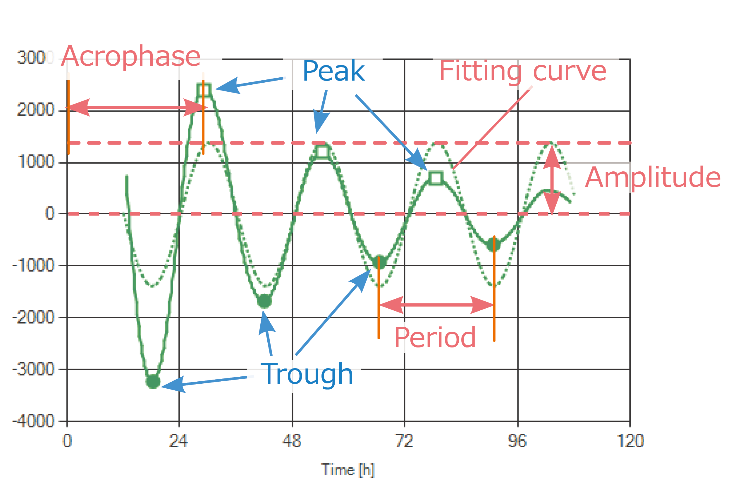 • Simple analysis results including period, acrophase, amplitude, peak/trough values