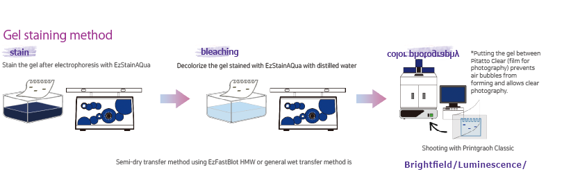 The figure above shows the results of β-galactosidase activity staining after electrophoretic separation using HR-CN-PAGE, conventional Native PAGE, and SDS-PAGE, captured with the Printgraph Classic. HR-CN-PAGE, like conventional Native PAGE, allows detection without inhibiting enzyme activity. In contrast, SDS-PAGE does not produce detectable bands because SDS affects enzyme activity.