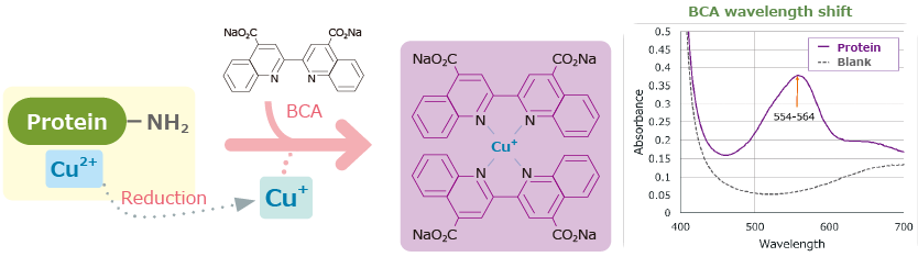 Measurement at 562 nmImmediate detection after mixing with protein (measurement of absorbance at 595 nm)