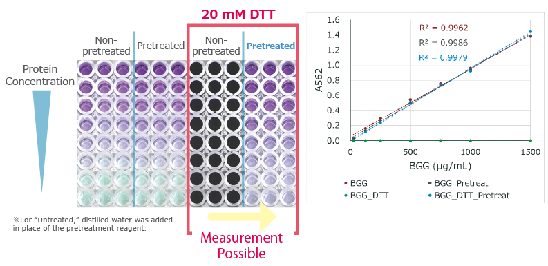 In addition, no differences in color development or measured values were observed between pretreated and non-pretreated BGG standard samples without DTT, indicating that the pretreatment step does not affect the assay performance.